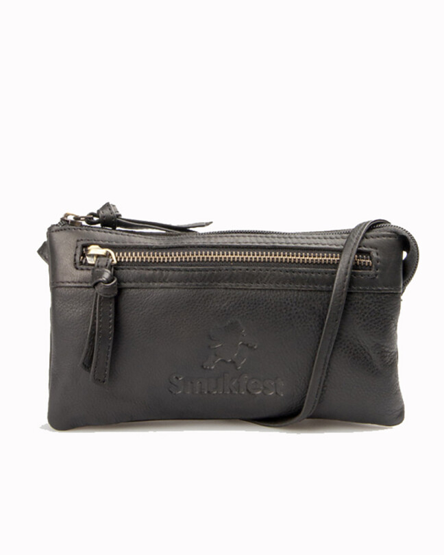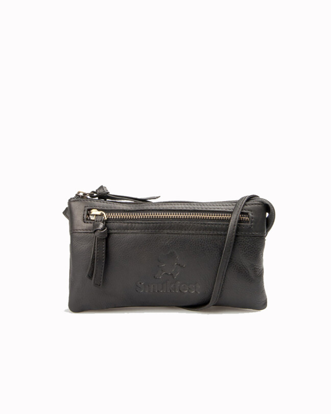 Clutch i sort læder. Præget med Smukfest og Walther.
