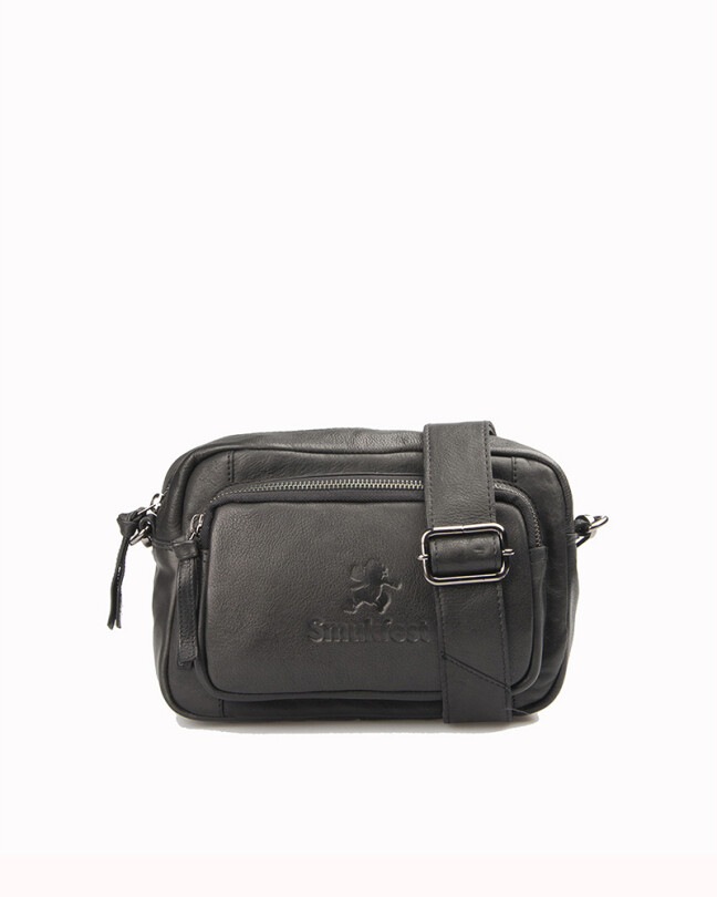Skuldertaske/crossbody i sort læder til dig der er ved at være træt af bæltetasker ;)